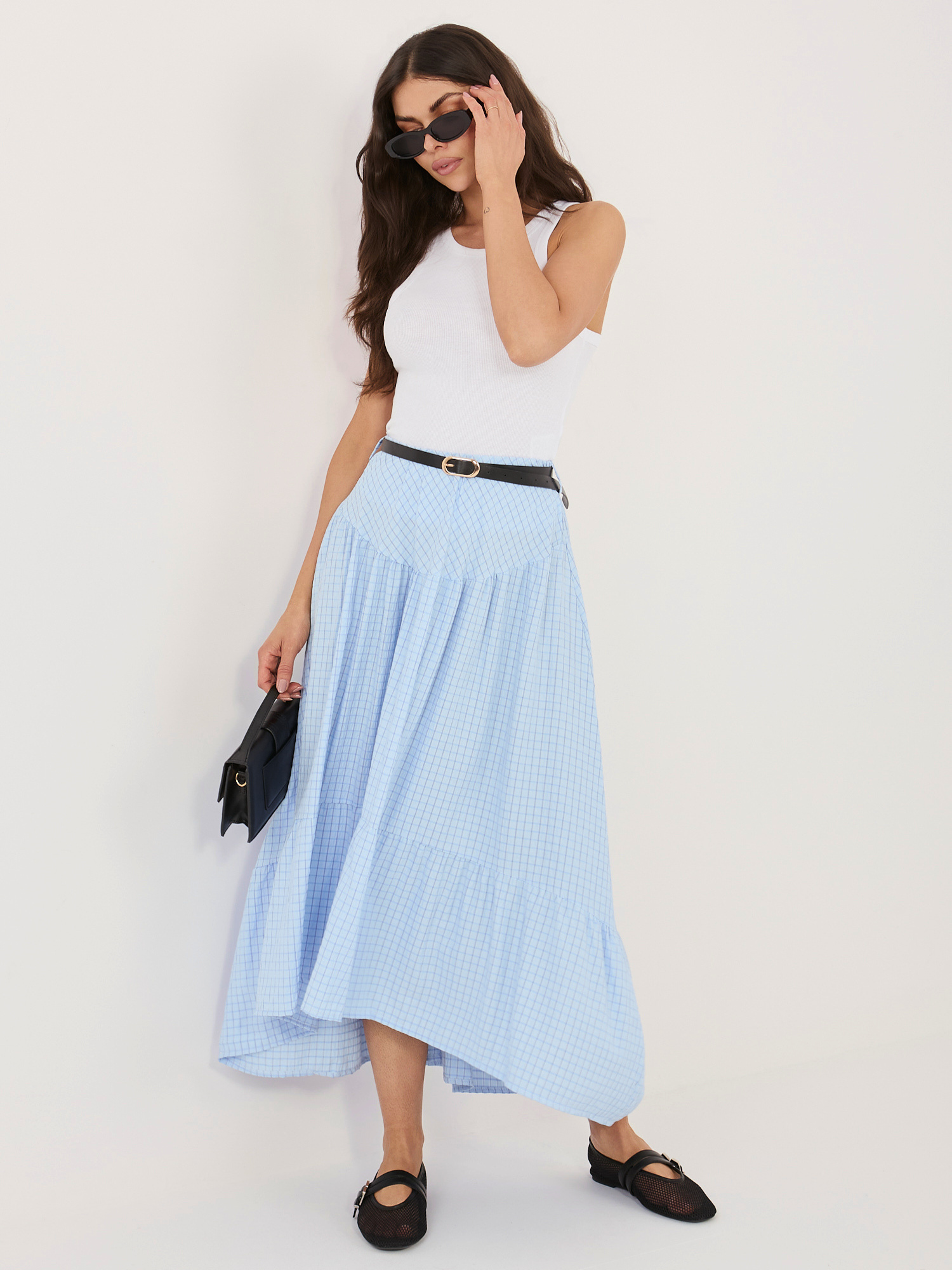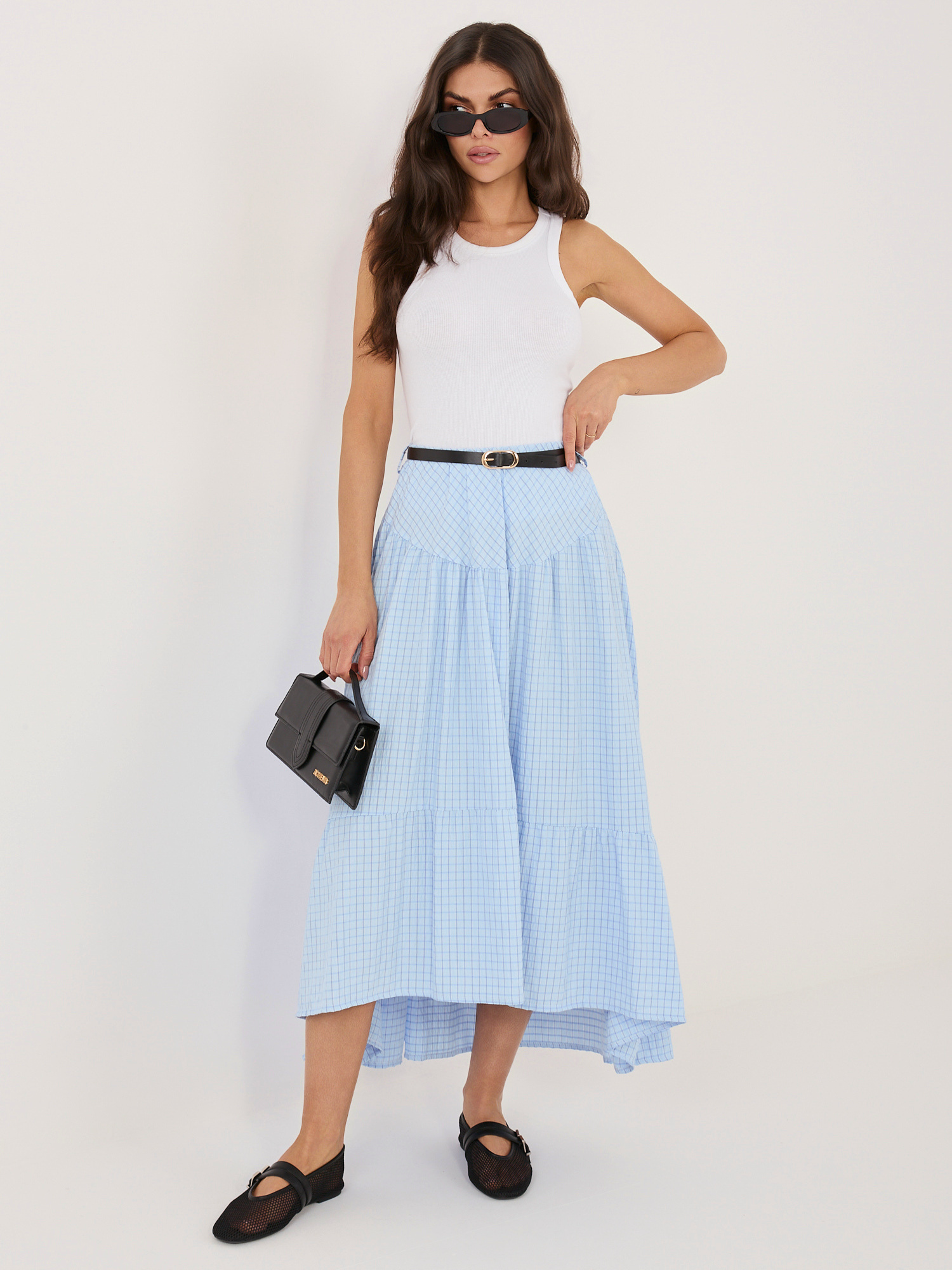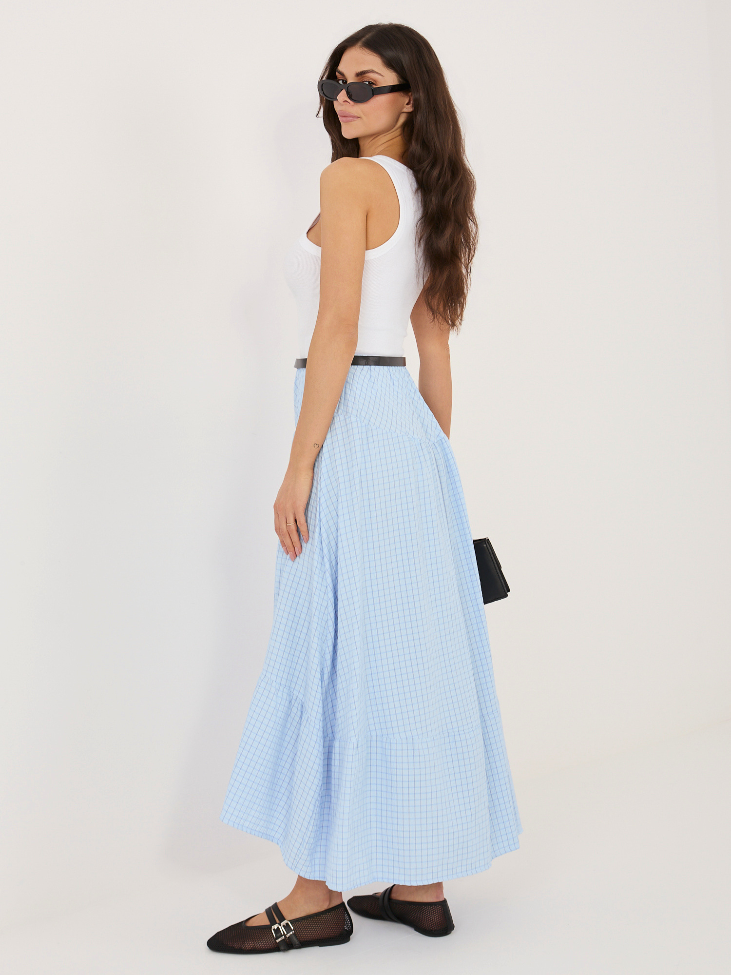 Jasnoniebieska rozkloszowana spódnica w kratkę