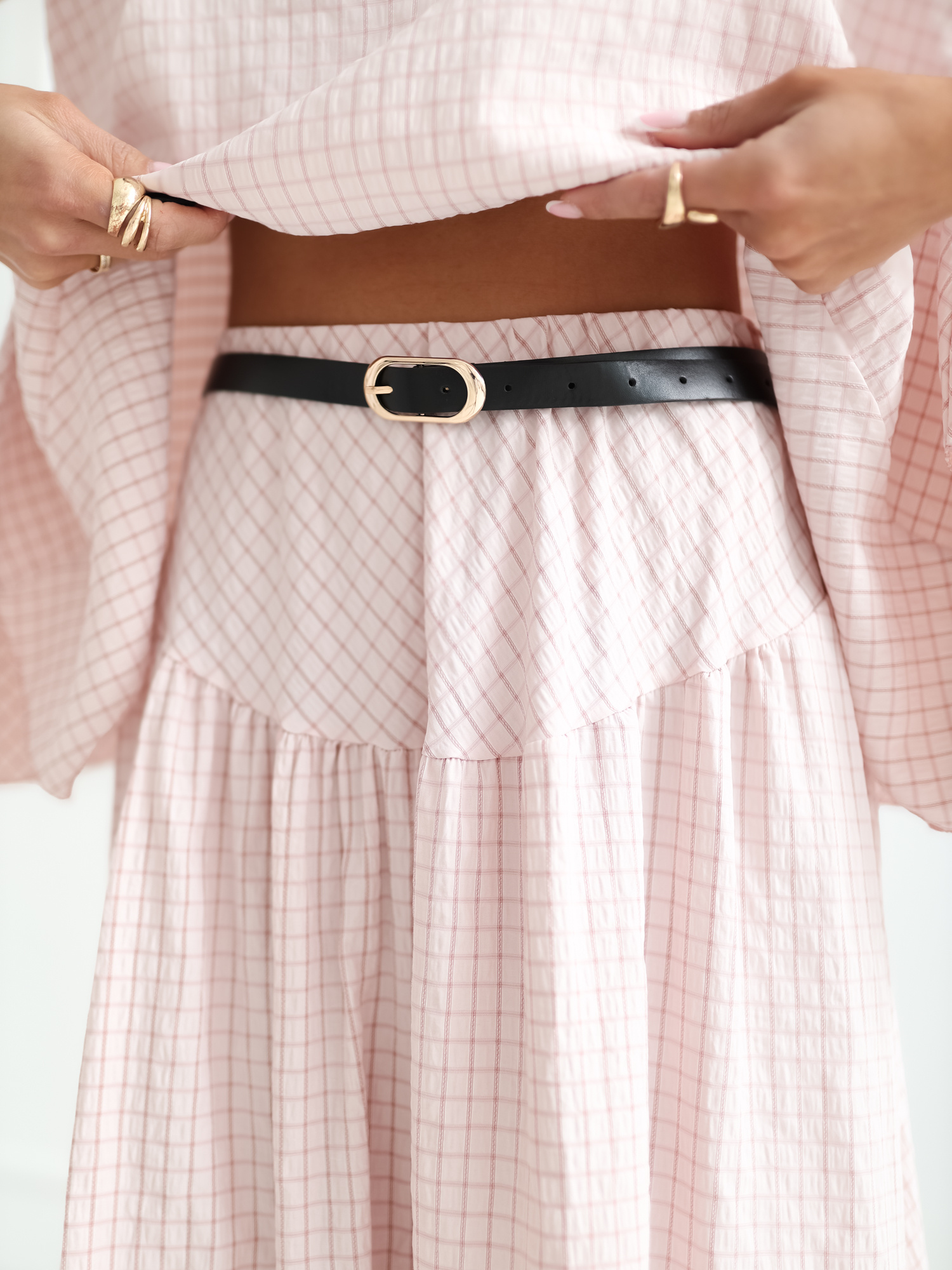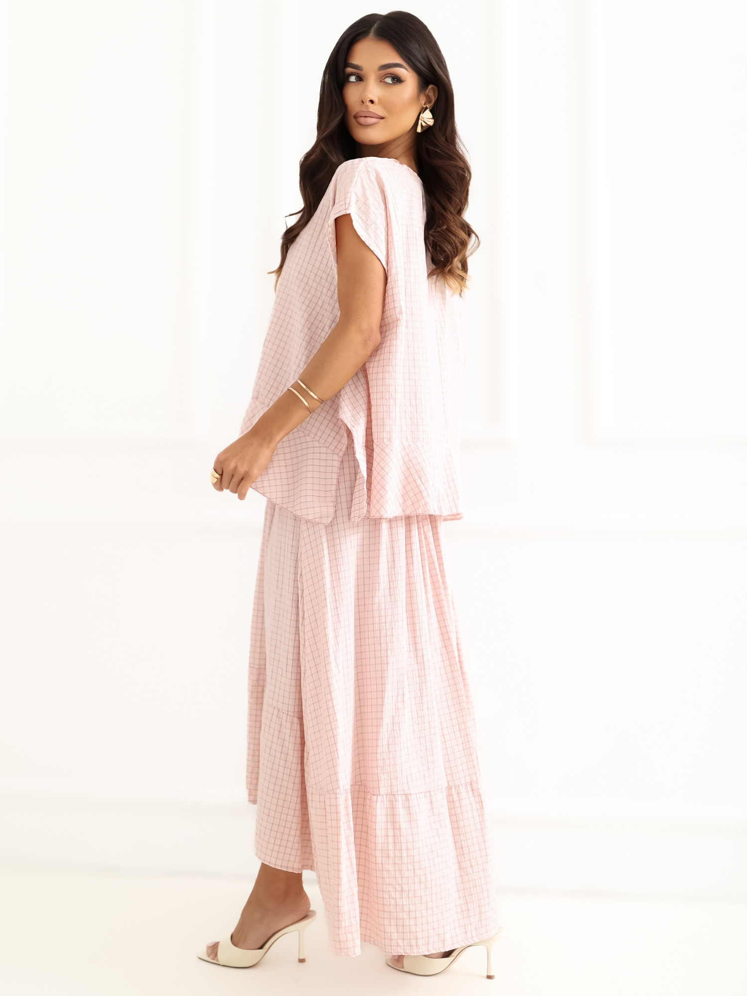 Jasnoróżowa długa spódnica z falbaną