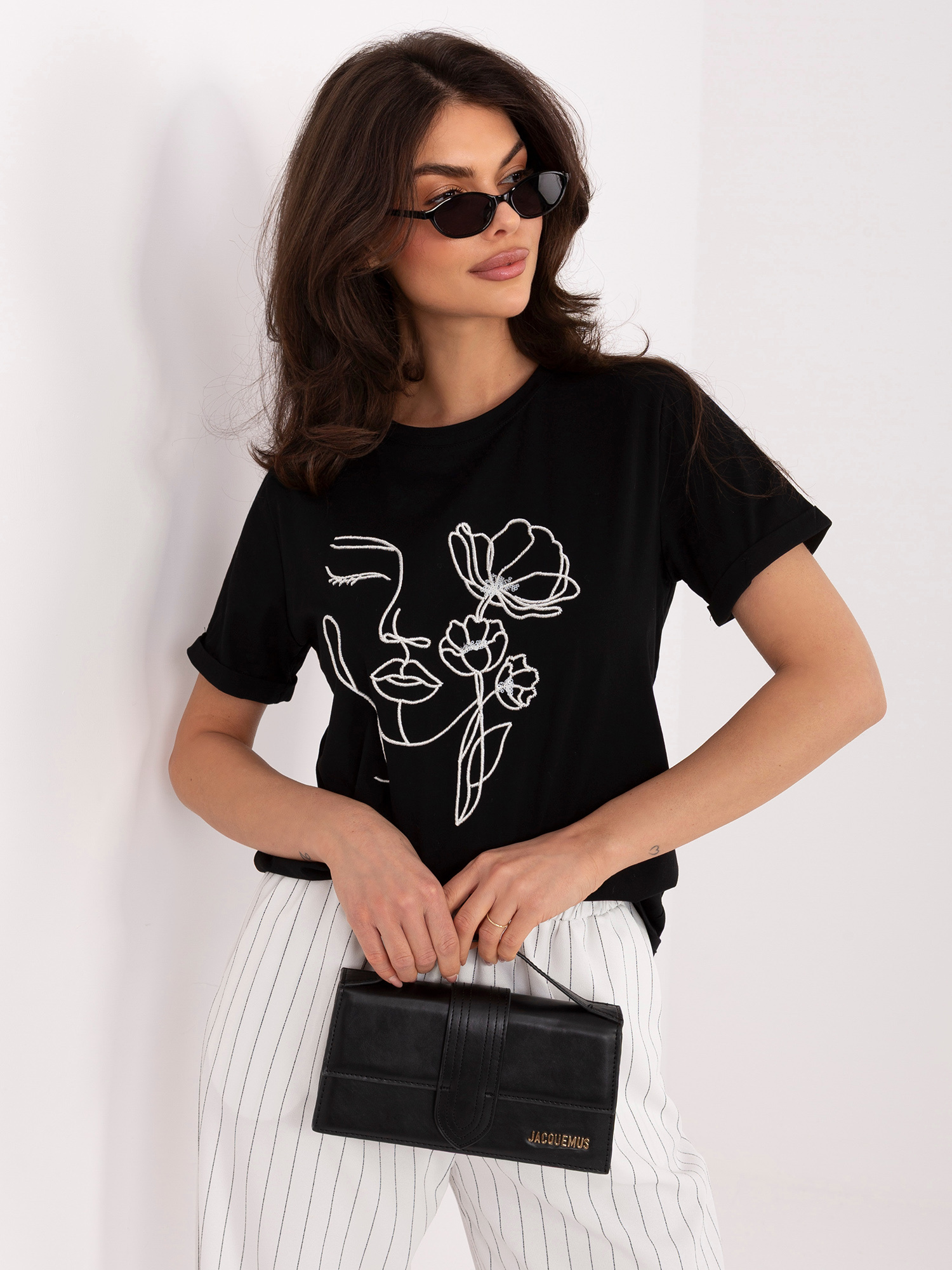 Czarny bawełniany t-shirt z haftem