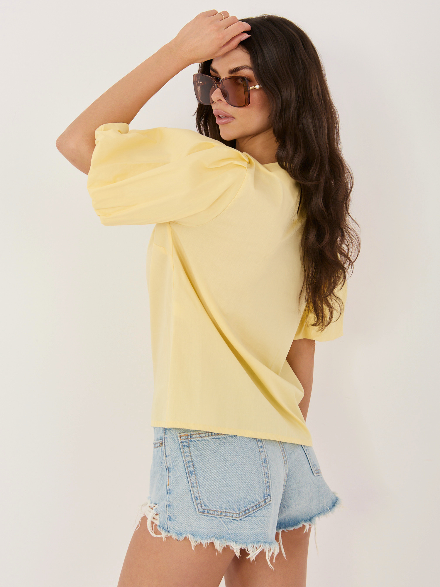 Jasnożółta bluzka oversize z krótkim rękawem .