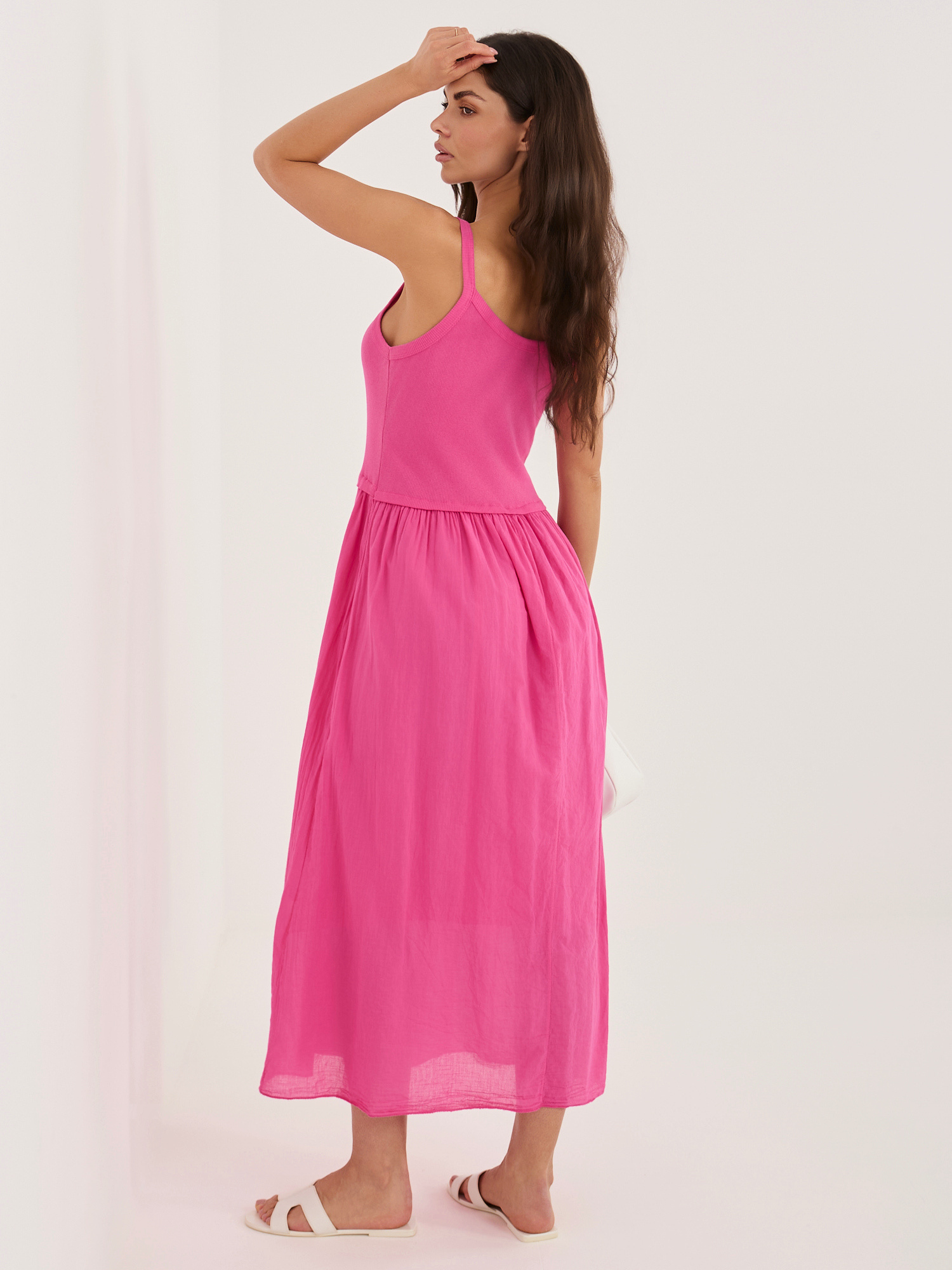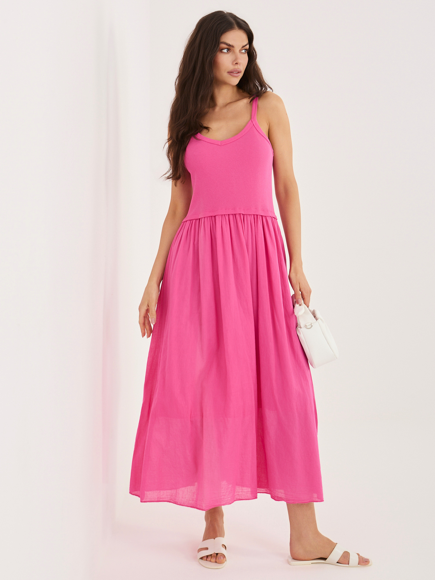 Fuksjowa bawełniana sukienka z podszewką