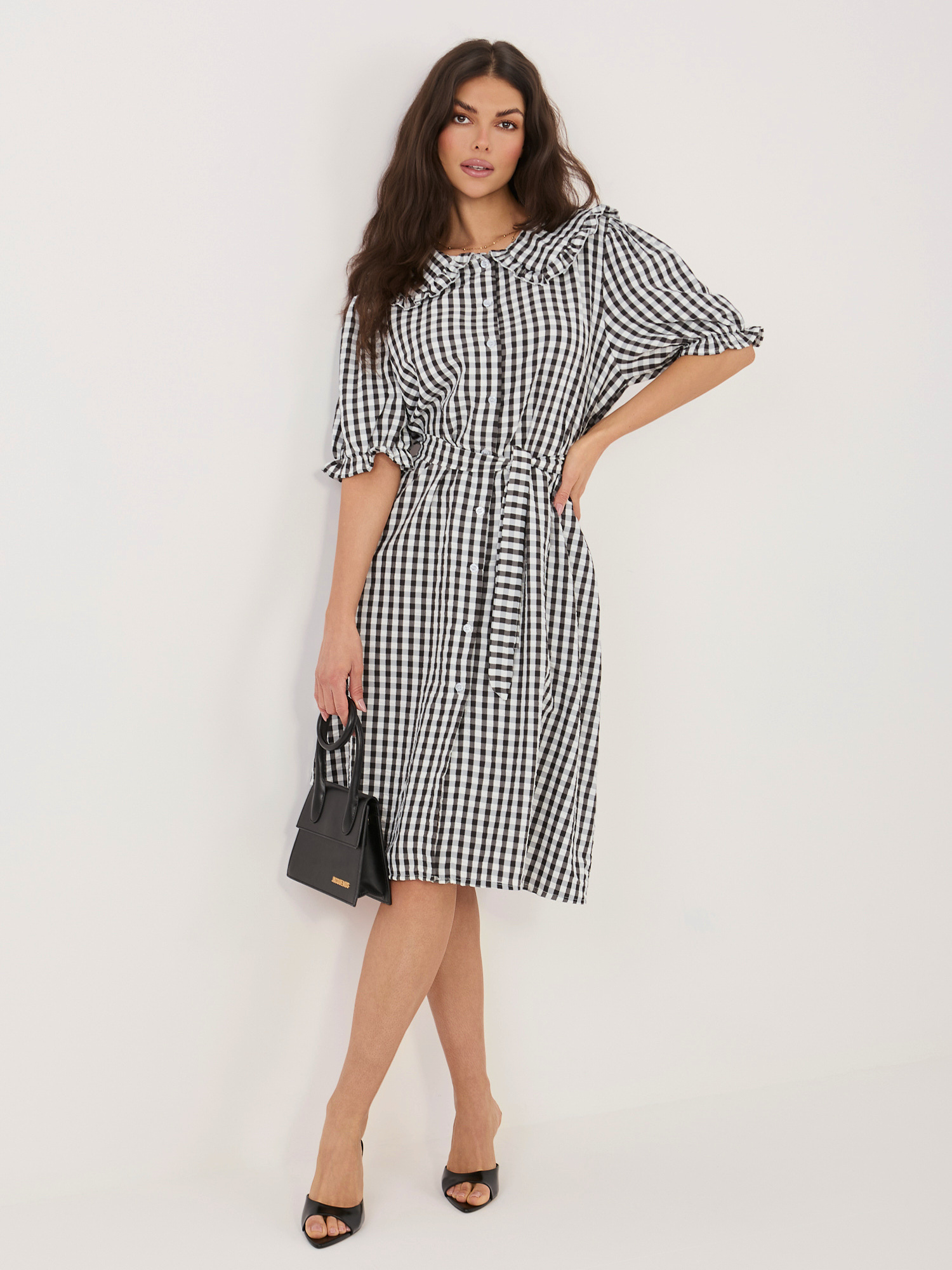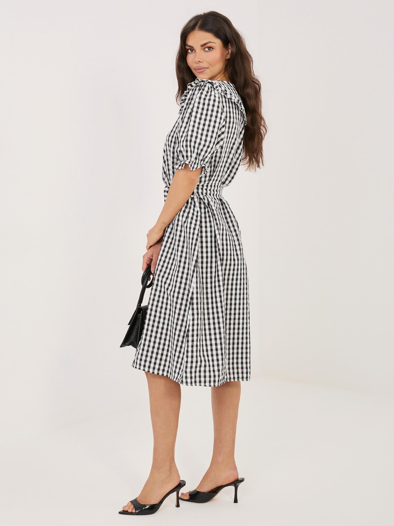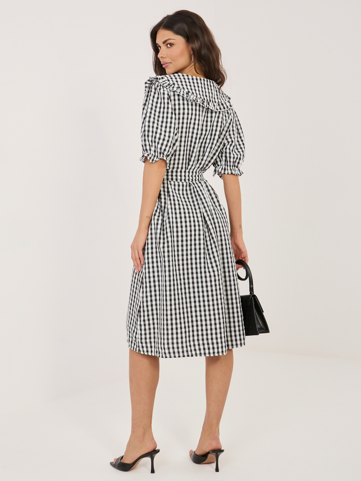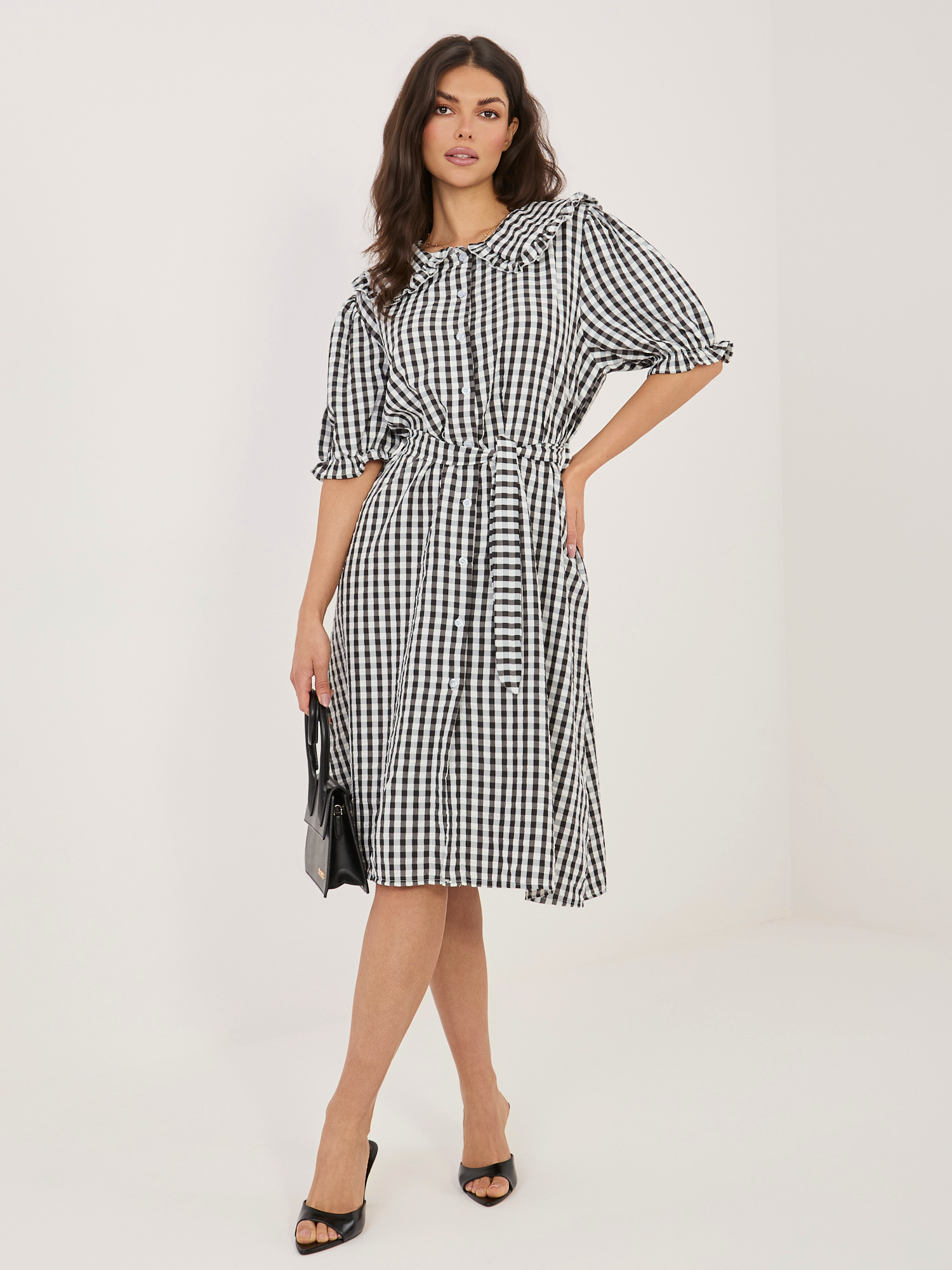 Czarna sukienka szmizjerka z kołnierzykiem