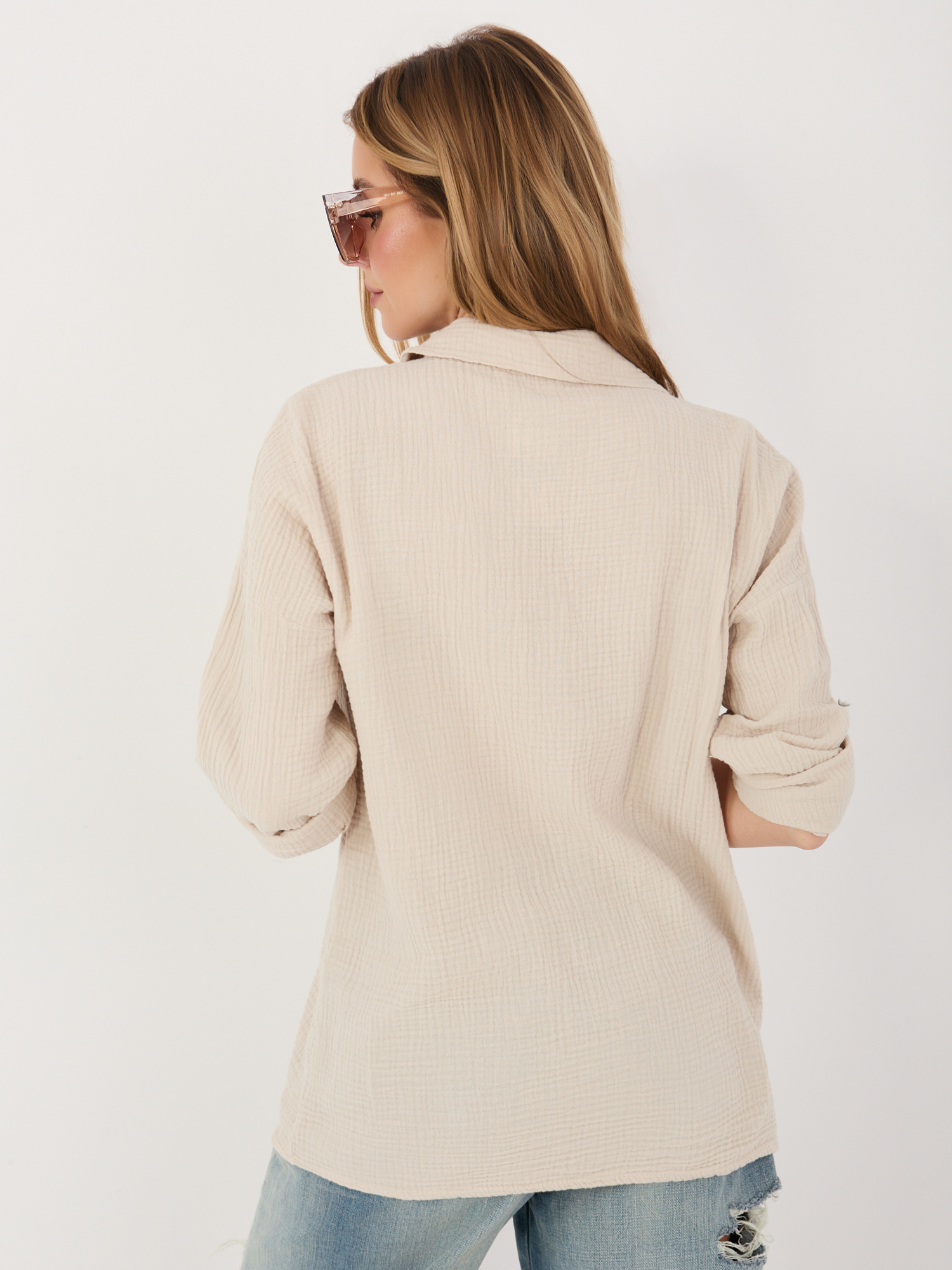 Beżowa rozpinana koszula z muślinu