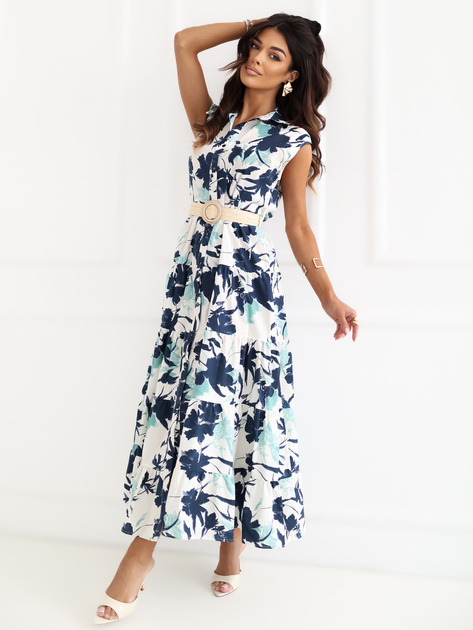 Granatowa letnia sukienka szmizjerka z paskiem