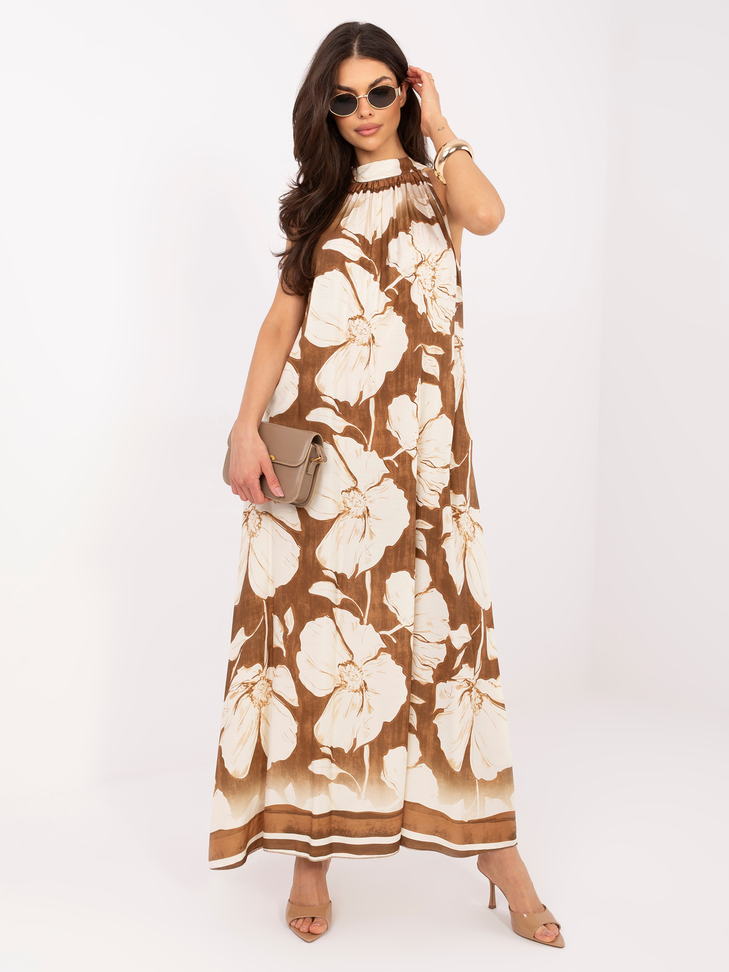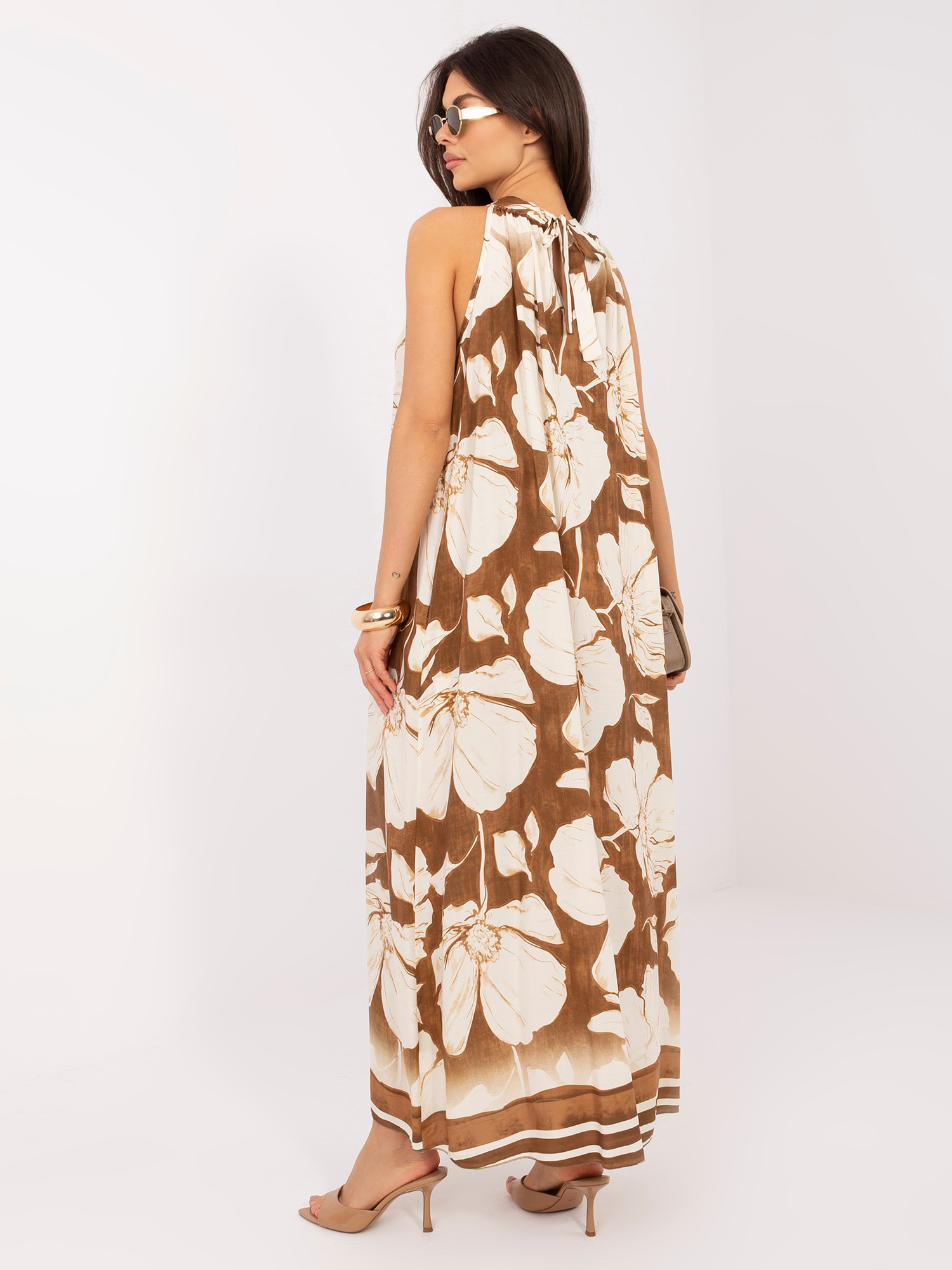 Brązowa maxi sukienka z dekoltem halter