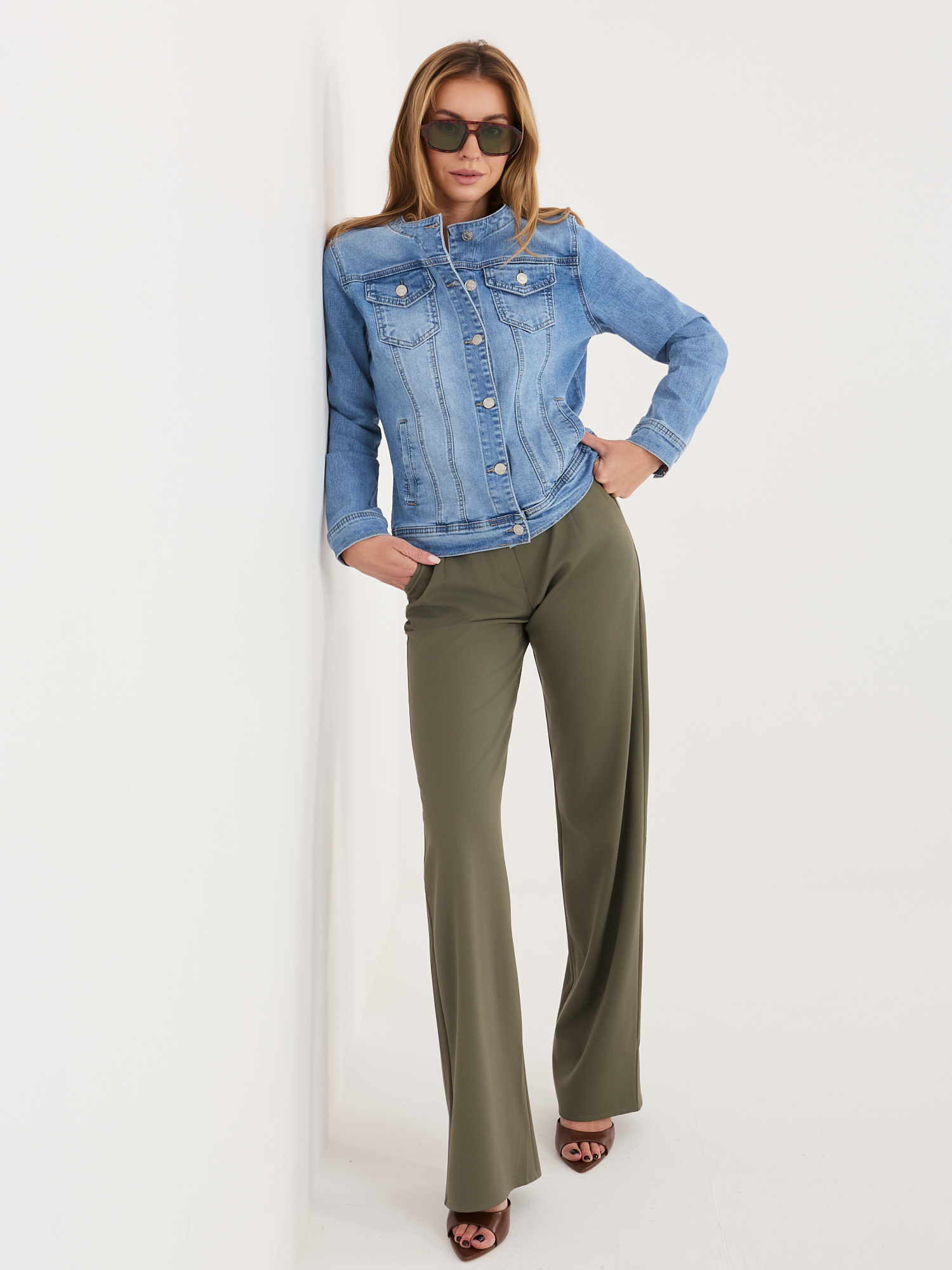 Niebieska jeansowa kurtka z okrągłym dekoltem