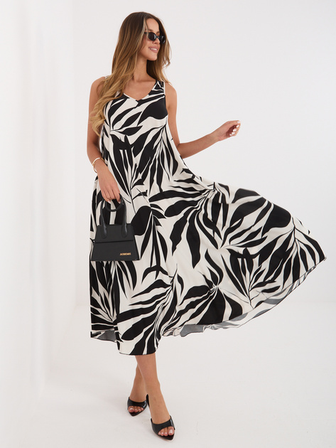 Czarna letnia sukienka z motywem roślinnym