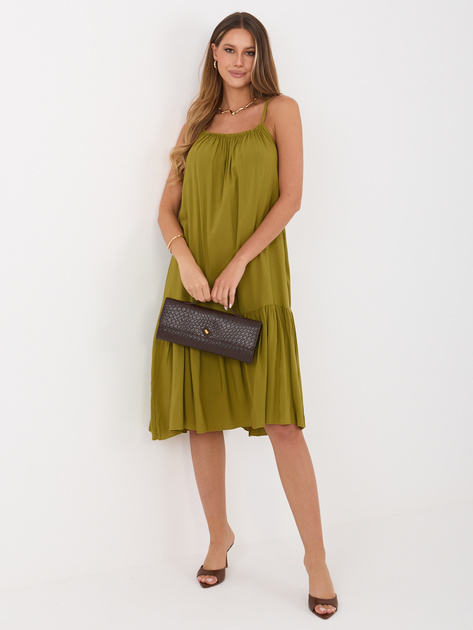 Oliwkowa midi sukienka na ramiączkach .