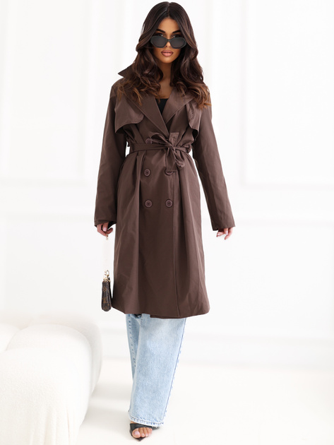 Brązowy dwurzędowy trencz z paskiem RUE PARIS .