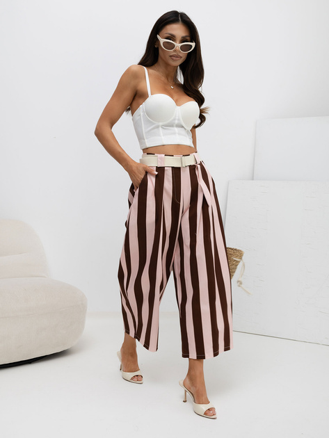 Jasnoróżowo-brązowe bawełniane spodnie z nogawką 7/8 .