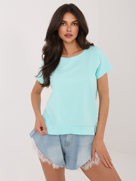Miętowa damska bluzka basic z krótkim rękawem RUE PARIS .