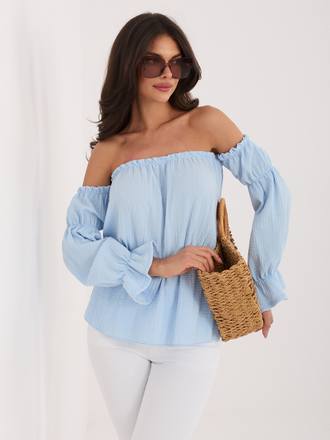 Jasnoniebieska muślinowa bluzka z odkrytymi ramionami