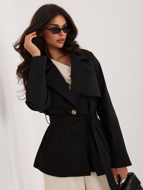 Czarny krótki płaszcz o kroju trencza RUE PARIS .