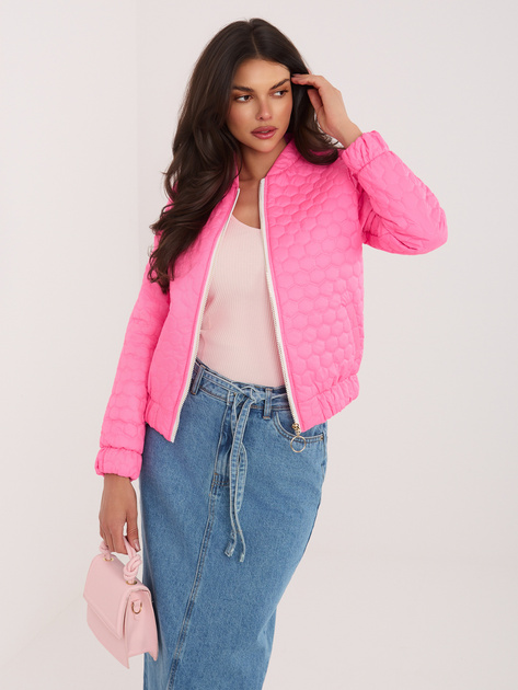 Fluo różowa pikowana kurtka ze stójką