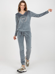 Hurt Czarny damski komplet welurowy ze spodniami i bluzą