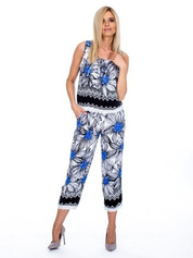 Czarno-niebieski wzorzysty komplet top i spodnie