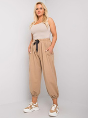 Beżowe spodnie dresowe plus size z szerokimi nogawkami Ferro