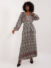 Hurt Beżowo-czarna rozkloszowana sukienka z printem
