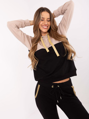 Hurt Beżowo-czarny damski komplet dresowy ze spodniami