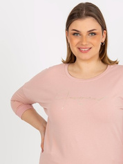 Hurt Jasnoróżowa bluzka plus size z nadrukiem i rękawem 3/4