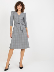 Hurt Jasnobrązowo-czarna sukienka koktajlowa w kratę z wiązaniem