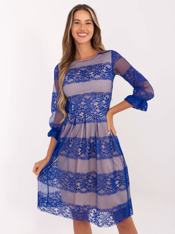 Hurt Kobaltowa midi sukienka koktajlowa z koronką i paskiem