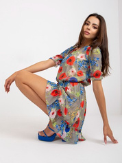 Khaki sukienka mini w kwiaty z krótkim rękawem Blake