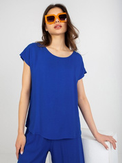 Hurtownia Kobaltowa wiskozowa bluzka na co dzień SUBLEVEL