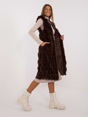Hurtownia Brązowa futrzana kamizelka z suwakiem