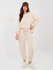 Jasnobeżowe dresowe spodnie z ozdobnym guzikiem