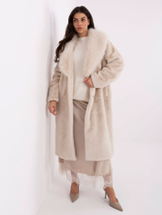 Jasnobeżowy zimowy płaszcz ze sztucznego futerka
