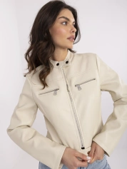 Beżowa krótka kurtka biker z zapięciem na suwak