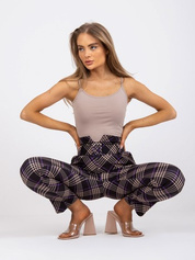 Czarno-fioletowe spodnie w kratę z wysokim stanem