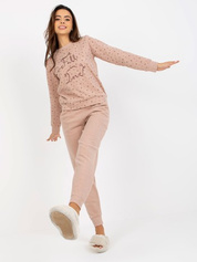 Hurtownia Beżowa ciepła piżama ze spodniami i bluzą