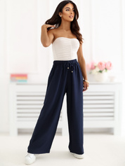 Granatowe spodnie wide leg w kant RUE PARIS