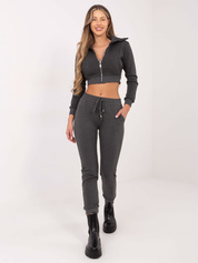 Ciemnoszare rękawiczki z dzianinową wstawką