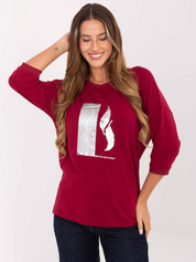 Bordowa bluzka oversize z rękawem 3/4