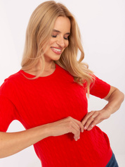 Czerwony sweter z ozdobnymi guzikami na rękawach