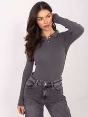 Grafitowy damska bluzka basic z długim rękawem