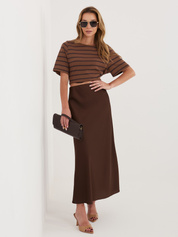 Brązowa midi spódnica satynowa z koronką RUE PARIS