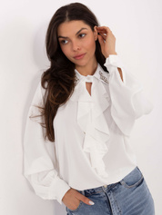 Czekoladowa wizytowa bluzka z ozdobnym kołnierzem