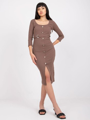Ciemnobeżowa dopasowana sukienka na lato RUE PARIS