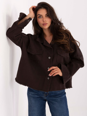 Ciemnobrązowa jeansowa kurtka z kieszeniami RUE PARIS