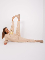 Hurtownia Beżowy ocieplany komplet dresowy z bluzą oversize