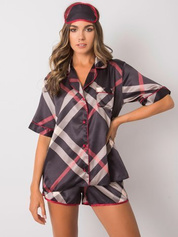 Biało-czarny trzyczęściowy komplet nocny w kratkę