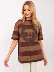 Hurtownia Brązowy damski t-shirt oversize z rozcięciami