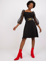 Czarna sukienka welurowa z długim rękawem Ellara RUE PARIS