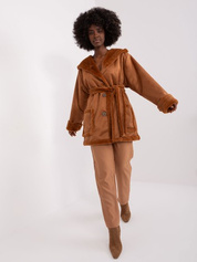 Hurt Camelowa futrzana kurtka przejściowa z kapturem