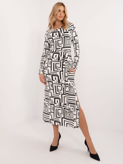 Hurt Biało-czarna midi sukienka z printem i paskiem