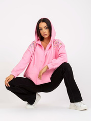 Hurtownia Różowa długa bluza rozpinana z kapturem RUE PARIS